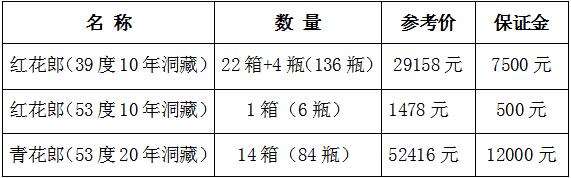 以上白酒均經(jīng)專業(yè)人員鑒定為正品,生產(chǎn)年份為2010年至2018年不等,拍賣標(biāo)的物先整體后分拍,整體保證金為20000元整。